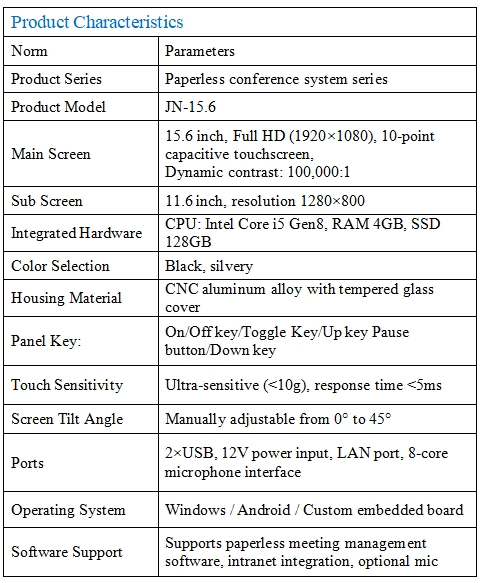 यस डेस्कटप टर्मिनल, 1 15..6-इन्च मुख्य टचस्क्रीन र 11..6 इन्च पछाडिको स्क्रीन, बैठक दक्षता, सुरक्षा क्षमता, र अन्तर्क्रिया अभिवृद्धि गर्न एक विस्तृत पॉलीसूनसनको एक हिस्सा